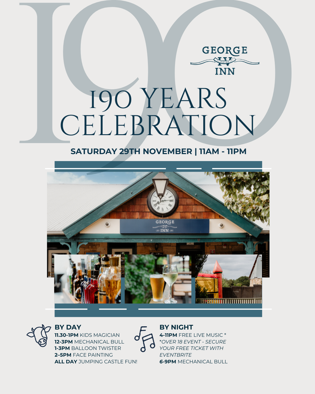 The George IV Turns 190! Since 1835 — and still pouring! Join us Saturday, 29 November, 11am–11pm as we celebrate 190 years of The George IV Inn — one of Picton’s and NSW's oldest and most iconic pubs! Daytime Fun for the Whole Family Bring the kids along for a great day out featuring: Face painting and balloon twisting A ...
